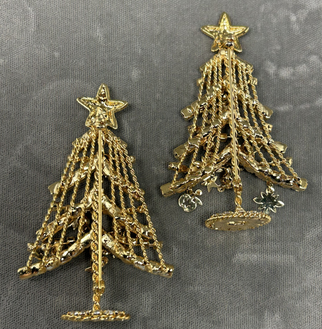 Dangly shapes of apples, snowflakes and stars on this Christmas tree pin, it can also stand on its own as a display. Pin measures 1 3/4" x 2 7/8".